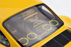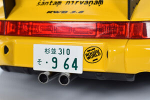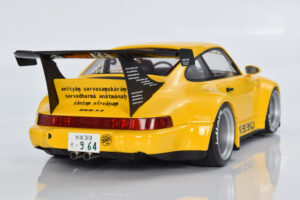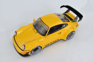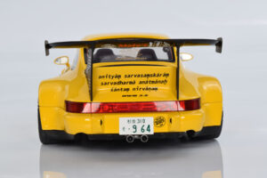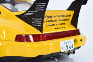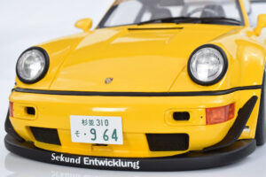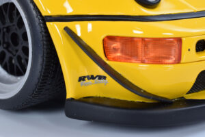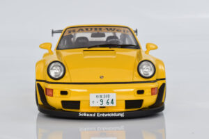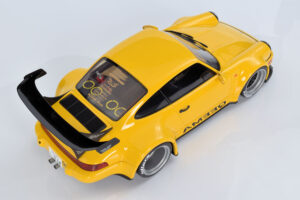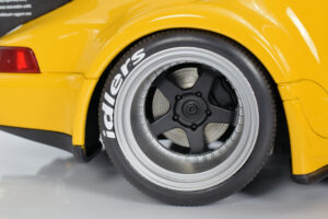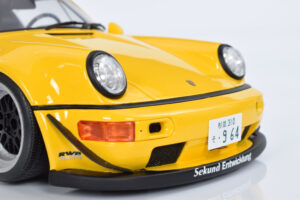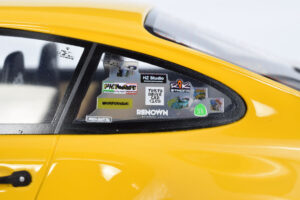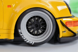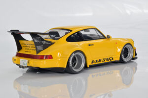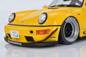 Visually, the miniature Queema is a triumph. The brilliant Yellow paint screams for attention, while the signature fat fenders, deep-dish wheels, and majestic “whale tail” wing capture the unmistakable aggression of Nakai’s vision. It’s a silhouette that defines the RWB brand, and GT Spirit has bottled that intensity flawlessly.