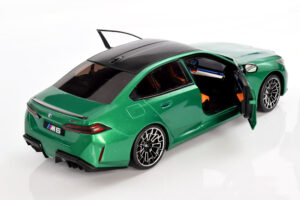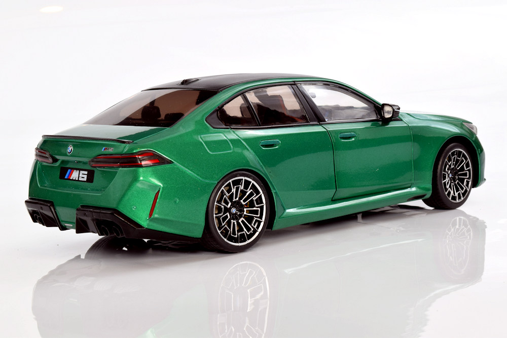 From a value perspective, Solido continues to serve the budget‑friendly end of the market well, offering a wide selection of BMW models spanning different eras. This M5 fits neatly within that line-up and presents well overall. Finished in Isle of Man Green Metallic, the colour suits the car nicely and adds visual interest without being overly bold. The honeycomb‑style wheels stand out as a highlight and contribute positively to the model’s stance, giving it a modern and recognizable BMW M appearance on the shelf.
