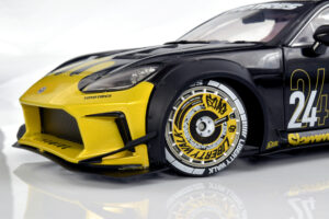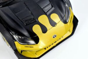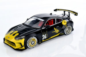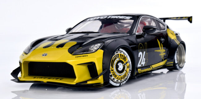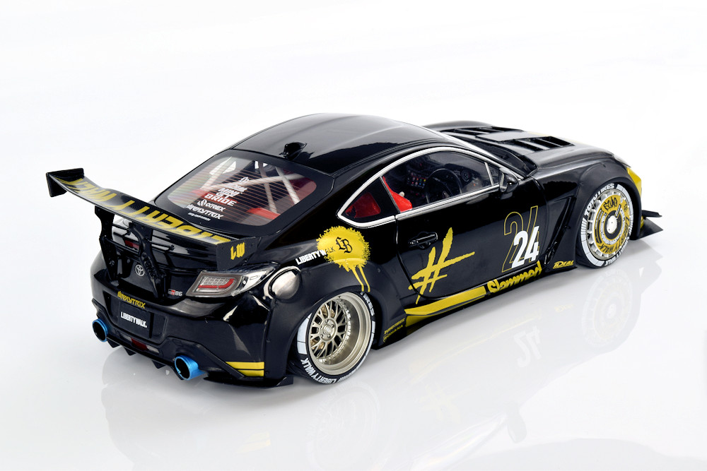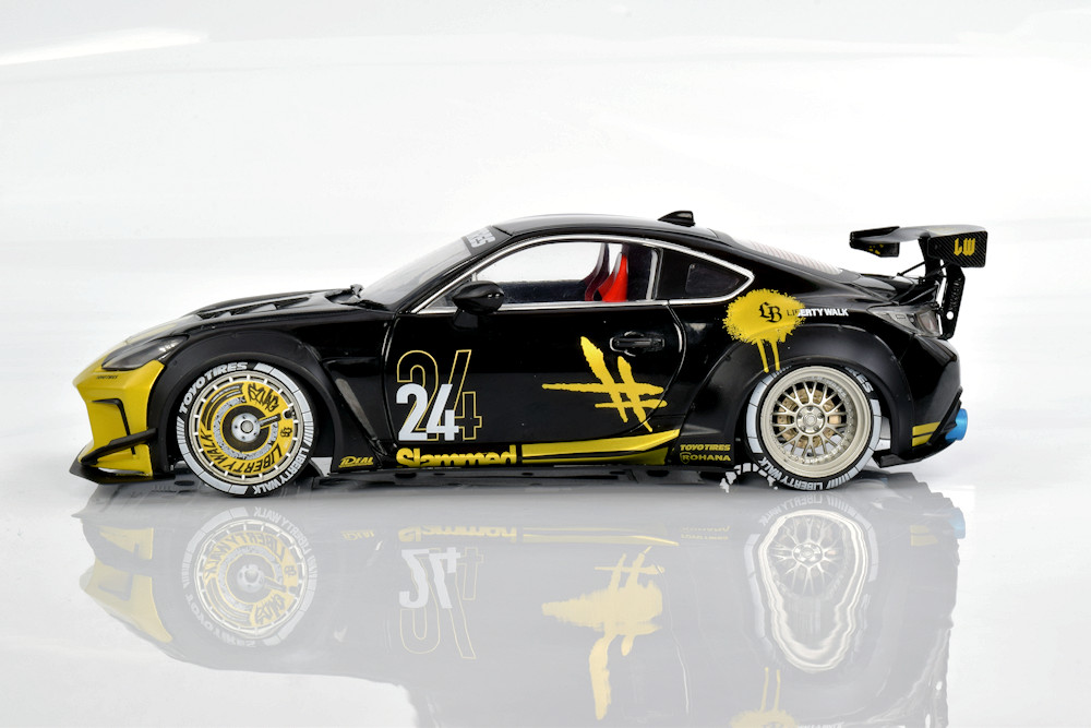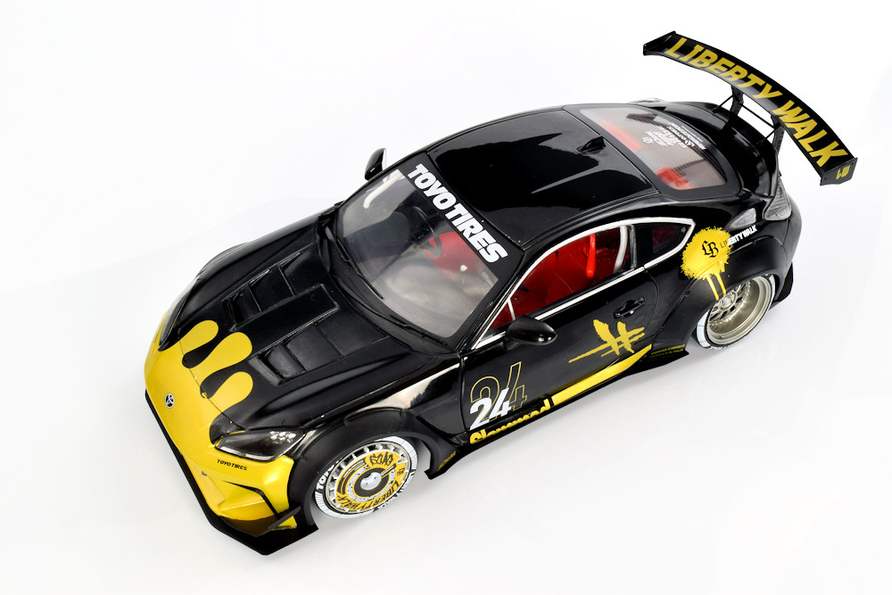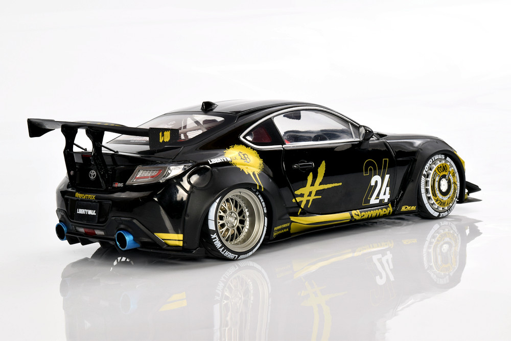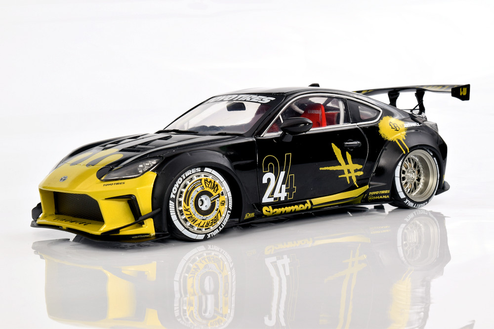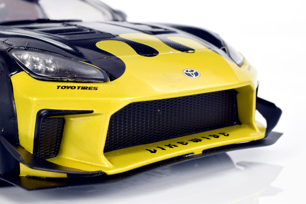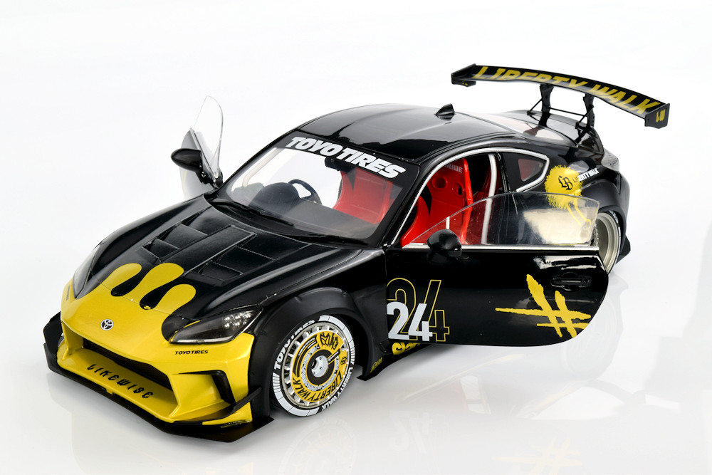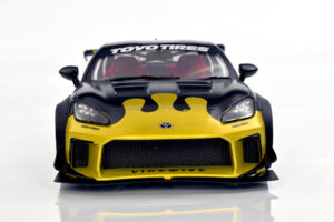 If we’re being honest, the team isn’t deeply invested in the Liberty Walk scene, though we absolutely understand the global appeal. There’s no denying the visual drama these cars bring, and this particular Solido release captures that energy surprisingly well. From the bold colour execution to the painted wheel covers, the model has a presence that feels genuinely special. Officially defined as the 1:18 diecast metal, semi‑opening Toyota GR86 Liberty Walk Body Kit in Gold and Black (2024), it stands out immediately in a crowded segment.