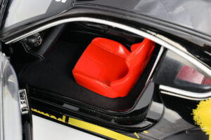 As expected at this price point, access to the interior is the only functional opening feature — a standard compromise for a budget‑friendly model. The bright red seats inject a welcome burst of character, giving the cabin a sense of flair that contrasts nicely with the exterior theme. That said, the model isn’t without limitations. A closer inspection reveals the usual cost‑saving measures: simplified components, lighter detailing, and some rough edges that remind you where Solido keeps the price in check.
