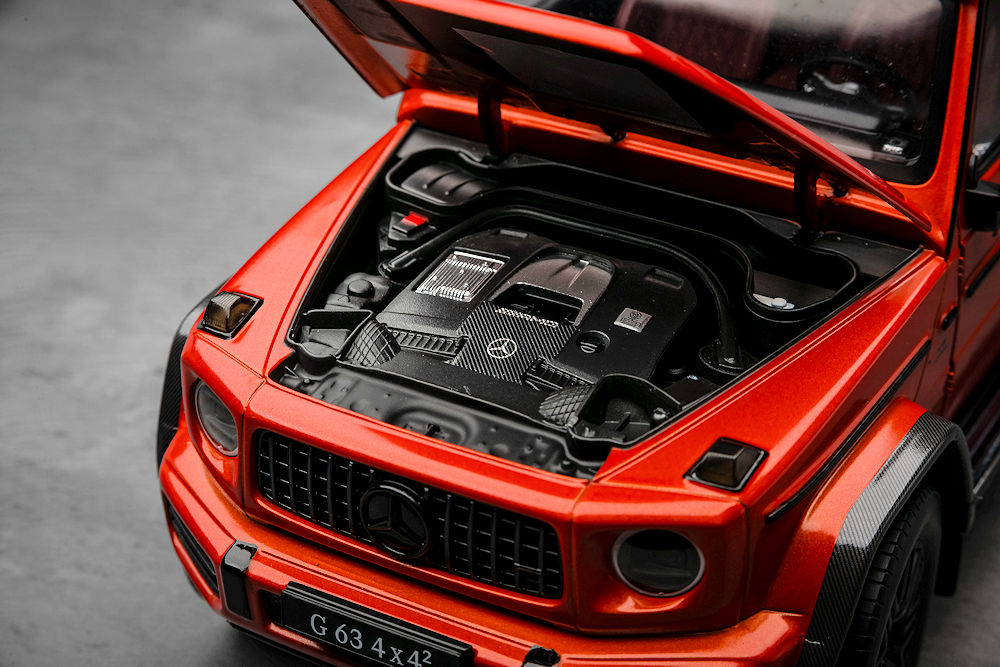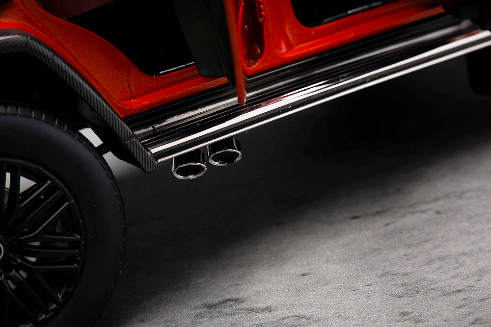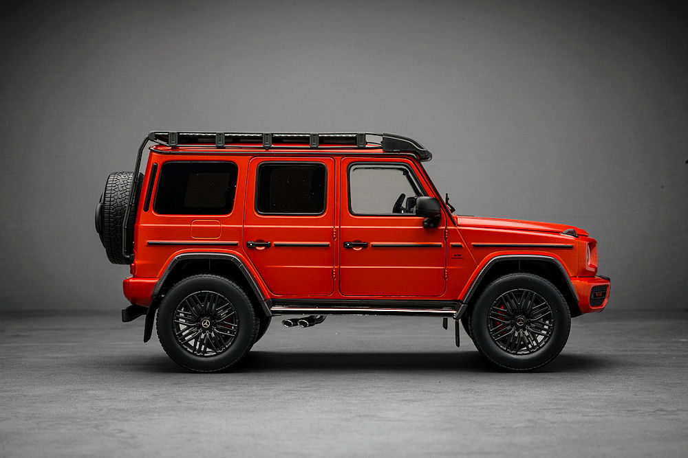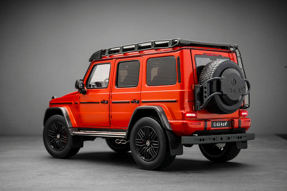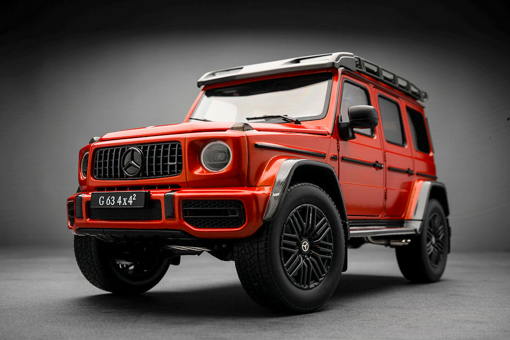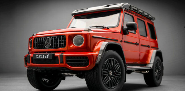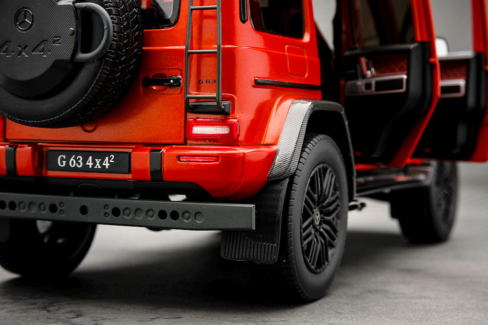 In the world of scale models, collectors are spoiled for choice. The G-Class has been produced in numerous versions over the years — from standard AMG trims to extravagant Brabus and Mansory editions — offered in both resin and diecast form. iScale’s rendition of the G63 AMG in Copper Orange Magno stands out immediately, its satin-finish hue exuding both sportiness and sophistication.
