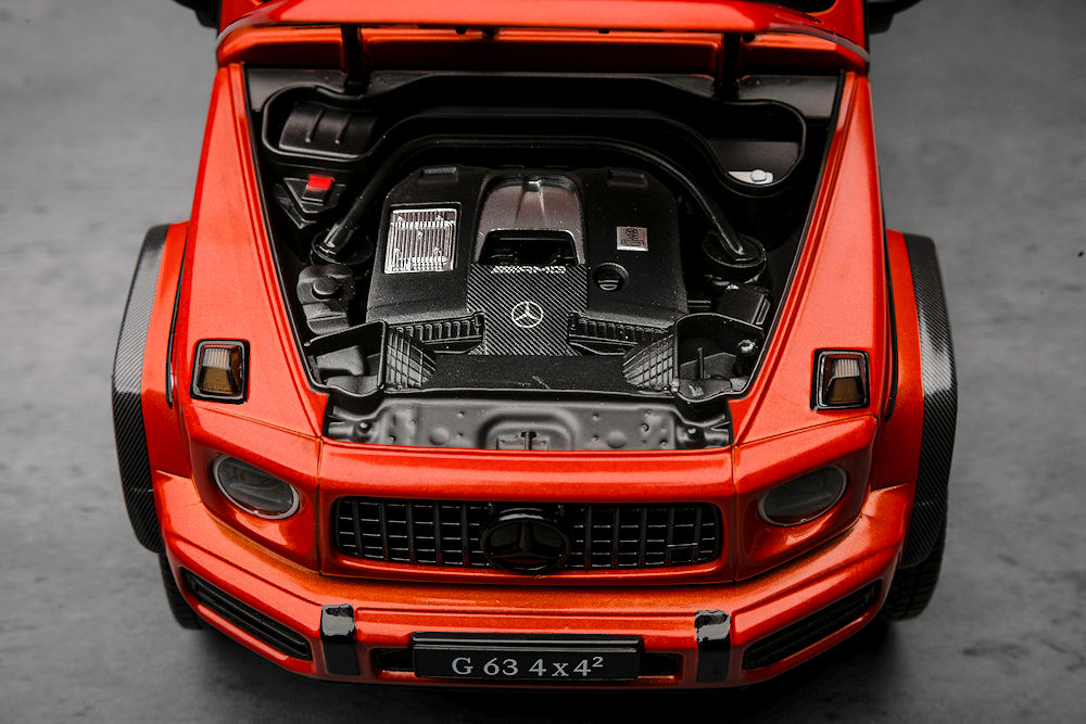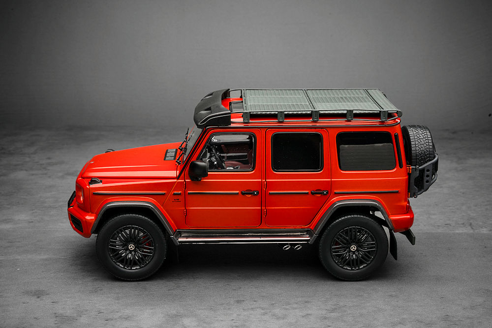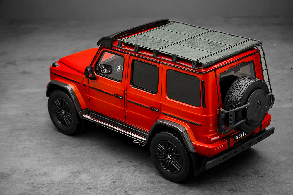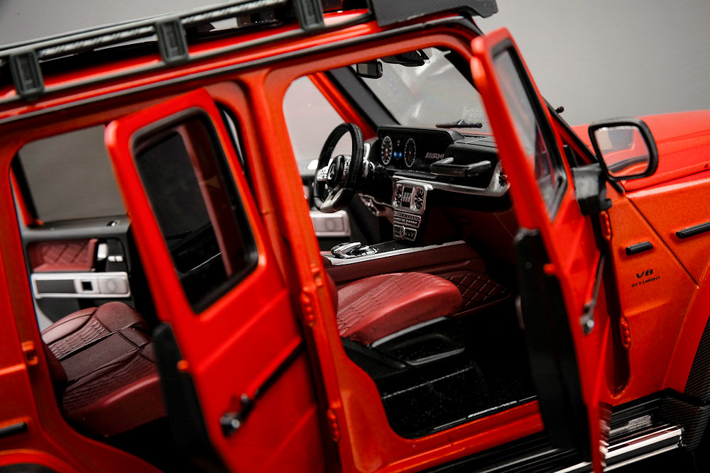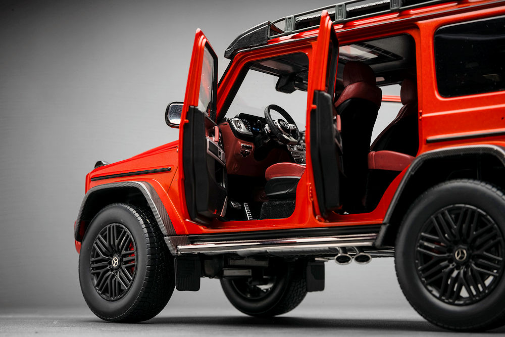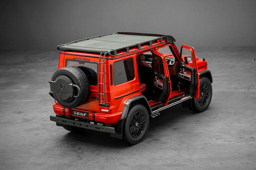 In the world of scale models, collectors are spoiled for choice. The G-Class has been produced in numerous versions over the years — from standard AMG trims to extravagant Brabus and Mansory editions — offered in both resin and diecast form. iScale’s rendition of the G63 AMG in Copper Orange Magno stands out immediately, its satin-finish hue exuding both sportiness and sophistication.