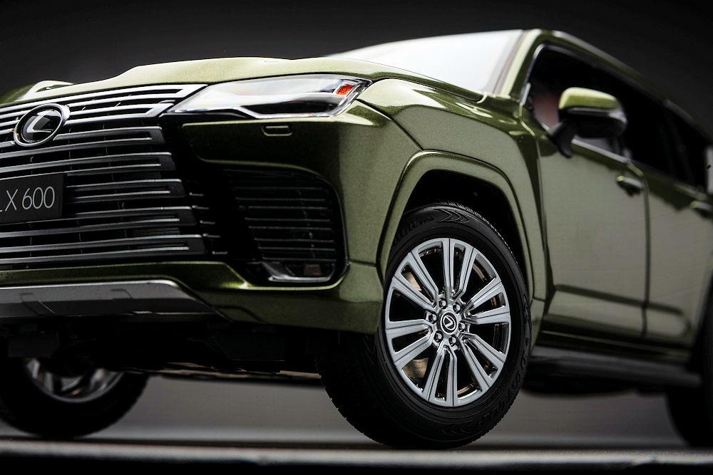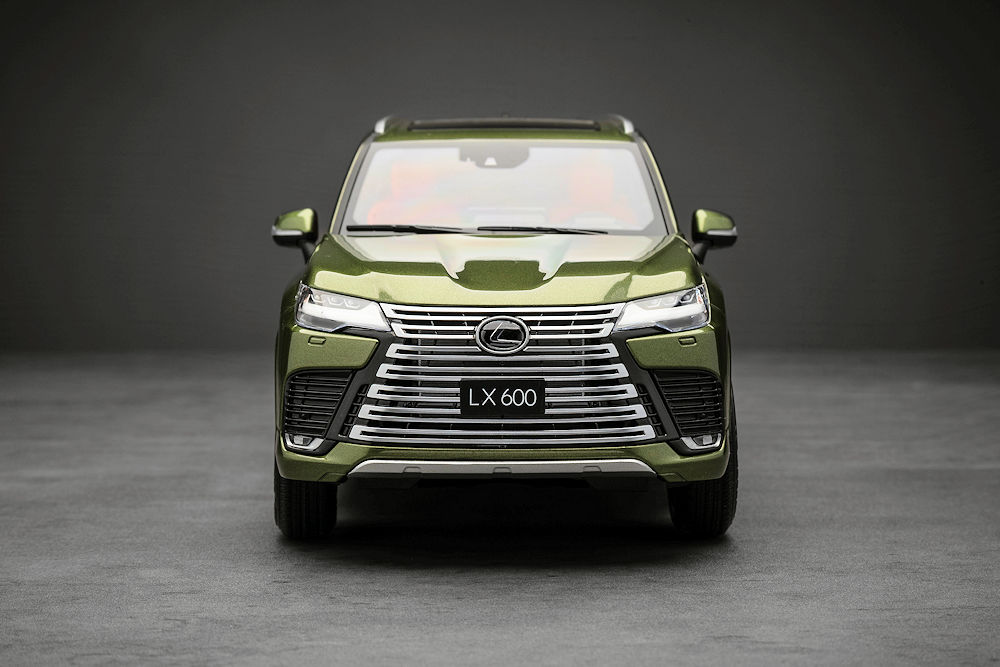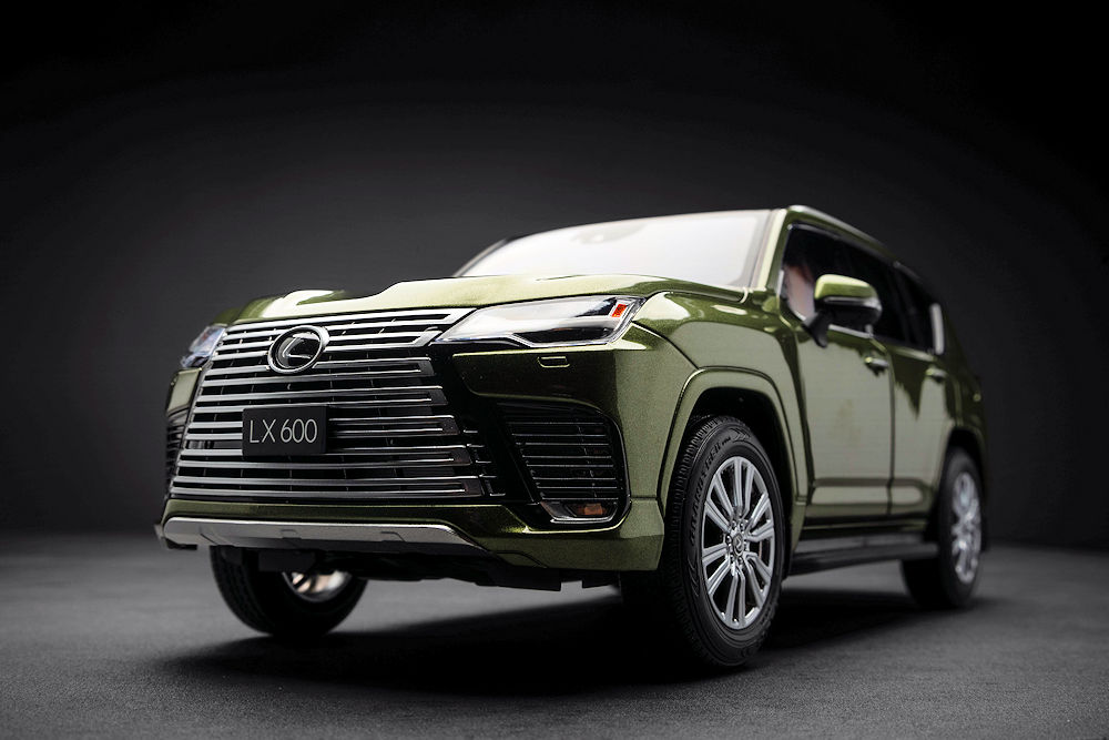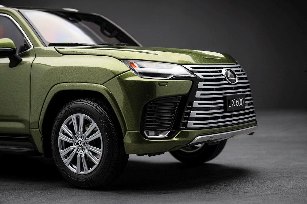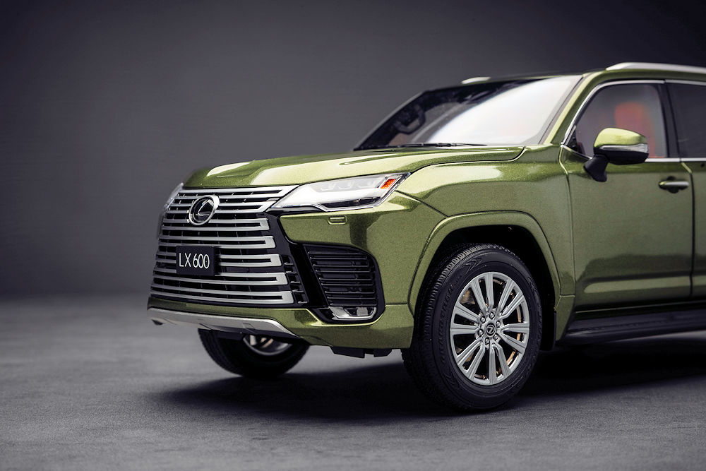 The first impression is dominated by the stunning Nori Green finish. This deep, luxurious metallic hue is beautifully applied, offering richness and depth under light and perfectly echoing the premium tone Lexus is known for. The massive front grille, one of the LX600’s defining design statements, is recreated with a fully hollowed-out mesh pattern. LCD’s precision here is exceptional—the layering and texture demonstrate a clear commitment to authenticity, elevating the model beyond a simple visual copy.