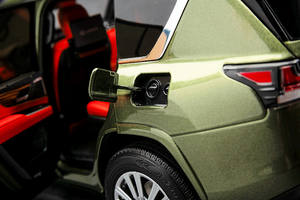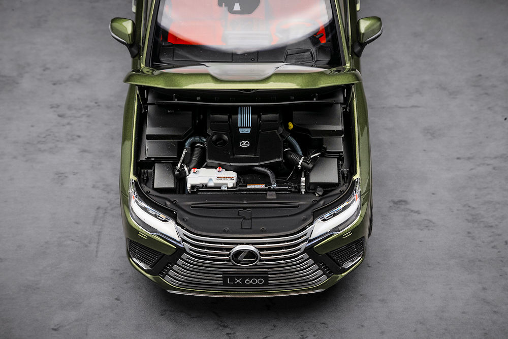 Functionality has become a hallmark of LCD Models, but the LX600 still manages to impress. All major openings—doors, hood, and tailgate—operate smoothly, revealing both a well-appointed cabin and a convincingly built twin-turbo V6 engine bay. Smaller touches, such as the functional fuel filler door, folding mirrors, operable sunroof, and sliding interior sunshade, show how far the brand is willing to go to deliver an immersive, interactive experience.
