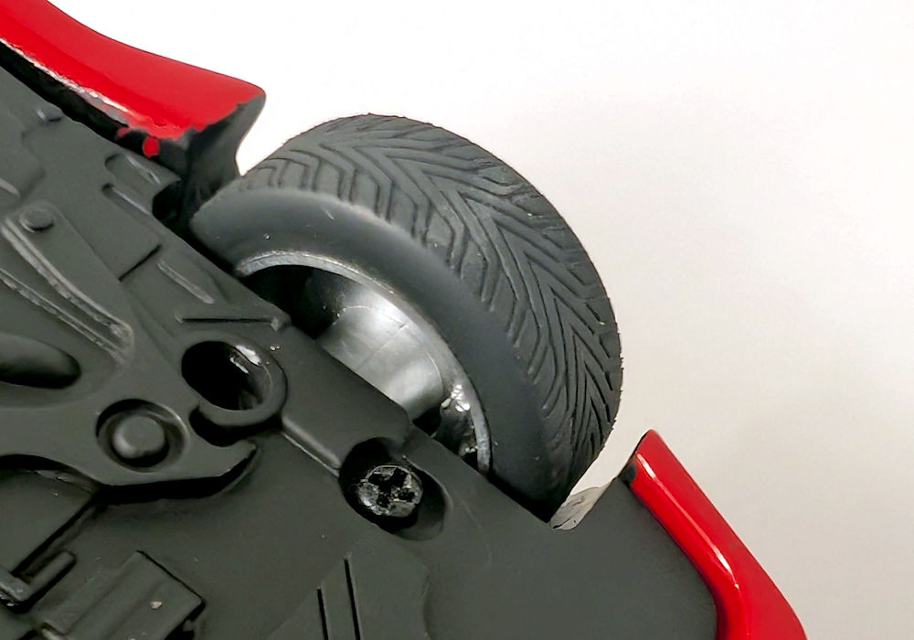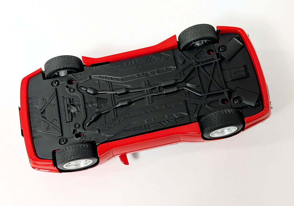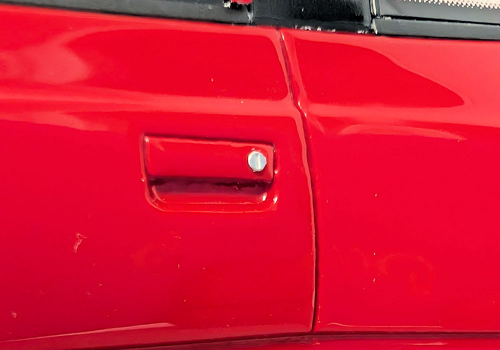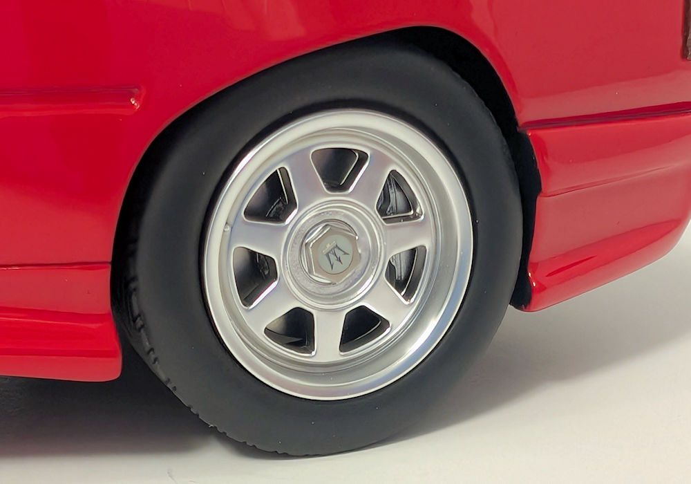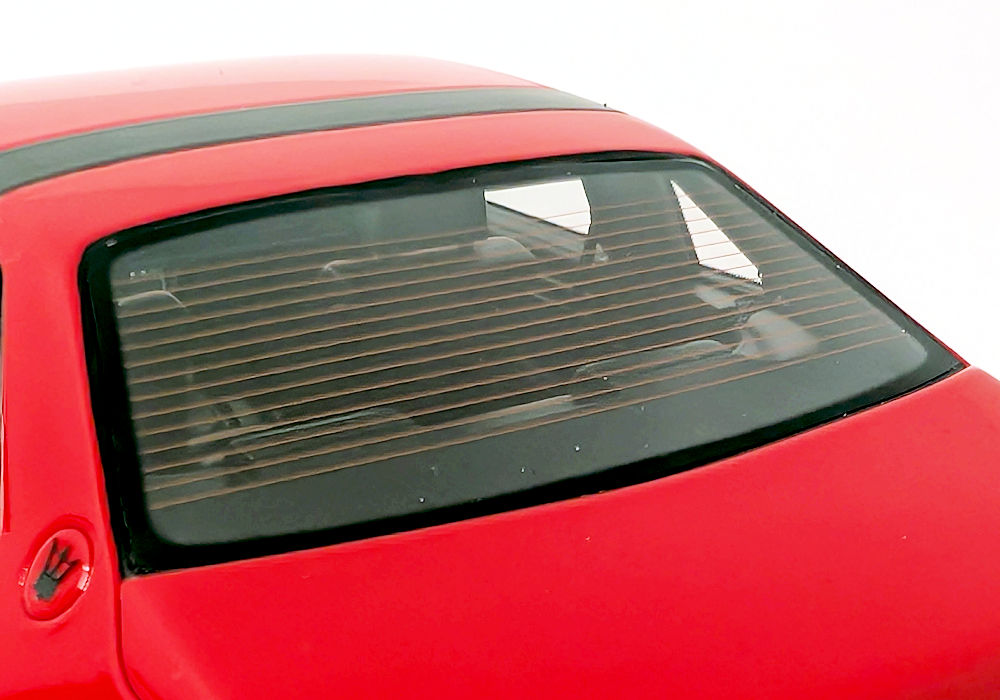 Out of the box, I can definitely see some shortcomings – this is unfortunate, as this model costs more than better quality models from brands such as GT Spirit. Paint execution of red is mostly smooth, however black painted bits could use some refinement. Trim areas around the side windows are poorly done – they are not properly adhered to both sides and are left hanging. And the window wipers- I am sorry, but they are very inaccurate. The raised aero element that looks like a spoiler running across the width of the front hood (just before the wipers) should be open, but instead it’s just a sealed piece – again not accurate.