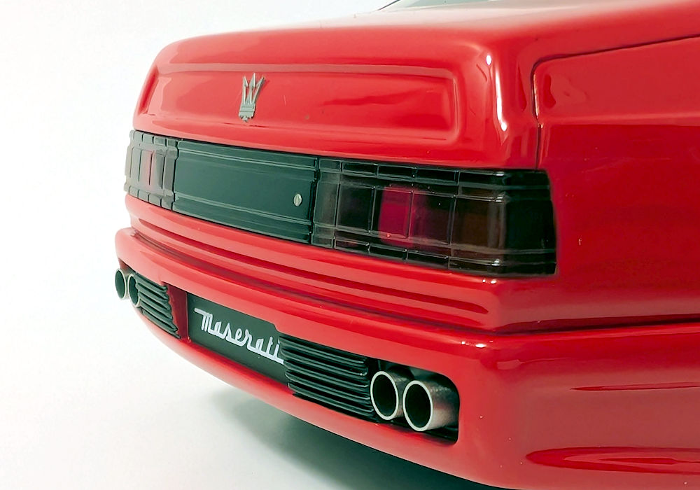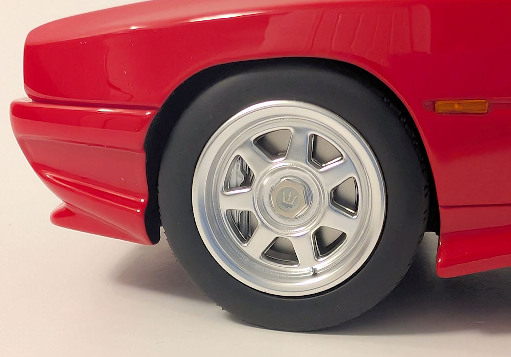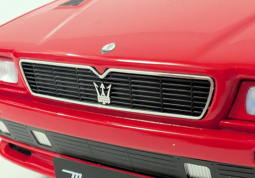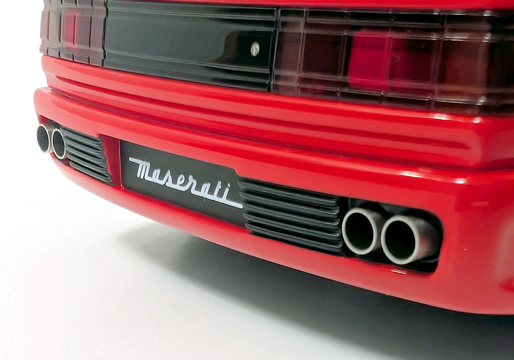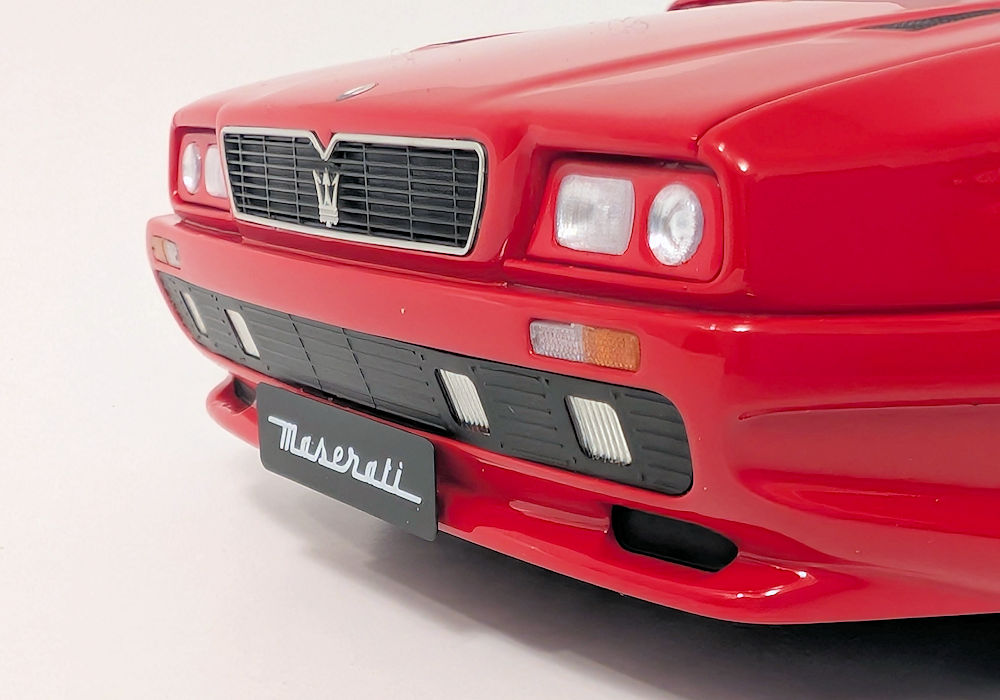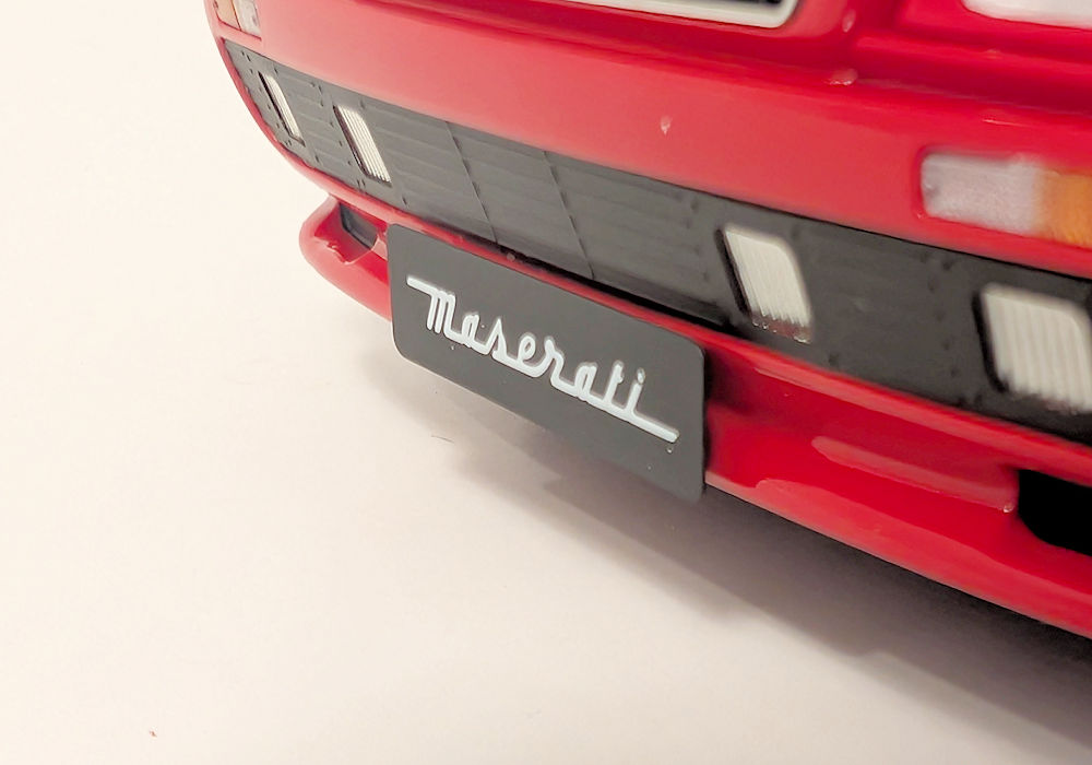 At the front, perforation does not exist, and four square lights on the bottom of the bumper have a lot to be desired – they look toyish and are too small. Front light lenses should be clear and not foggy-looking. On the positive side, the Maserati logo and scripted license plate give the model a nice visual look.