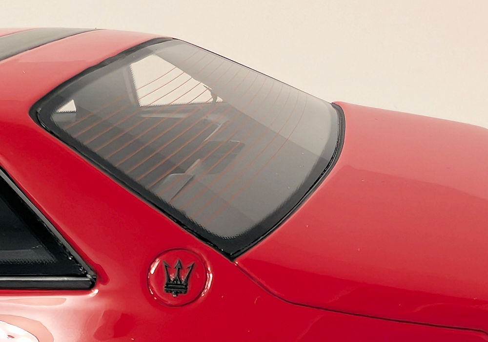 At the back, the model is satisfactory. Exhaust pipes are nicely finished and have good depth. Taillights have a smoked look, which is true to the original car. The Maserati emblem looks premium; however top part does not adhere to the model’s trunk. I do appreciate the silver key lock, and the Maserati license plate adds to the overall ambiance.