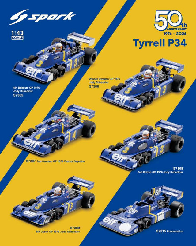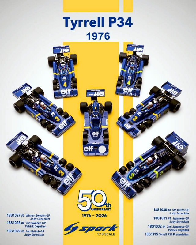 Spark is going all-out in scale model tribute to the 50th Anniversary Tyrrell Racing Organization. These models highlight the sis-wheeler race cars, which still fascinate fans to this day. And it does help that they look uber cool in Blue and White. The first production models will start arriving in September 202,6 with the complete assortment capped by December of the same year. Well done, Spark!