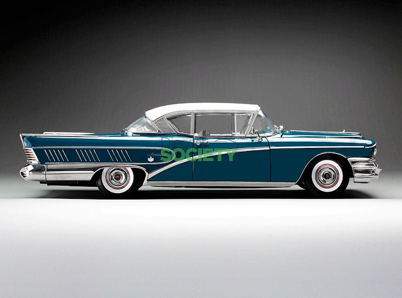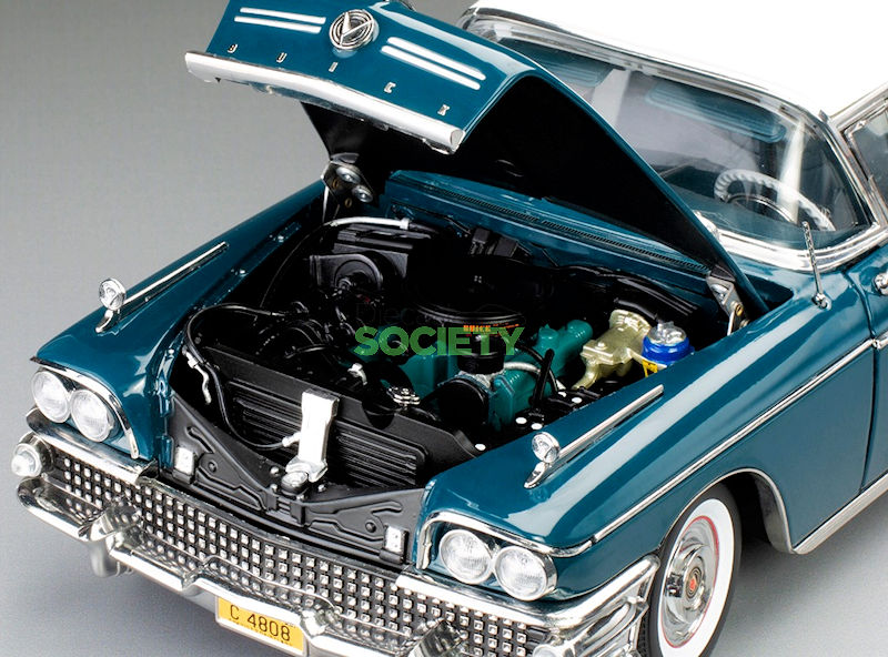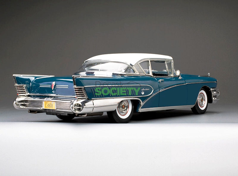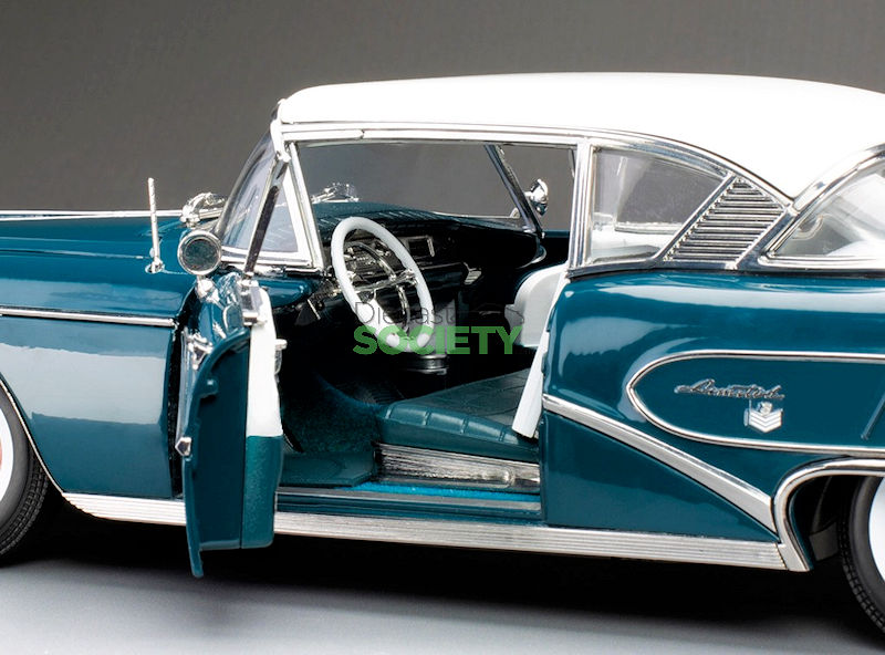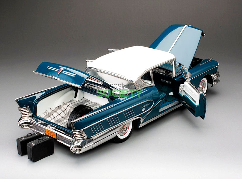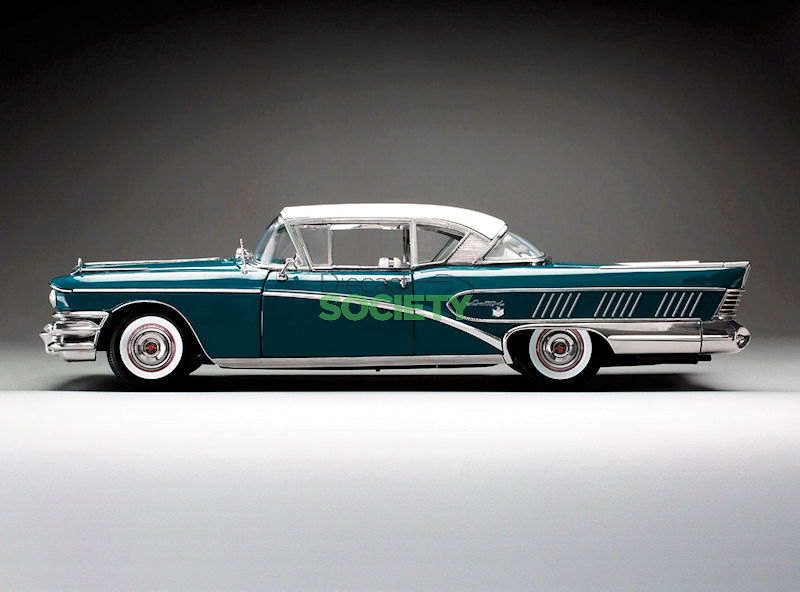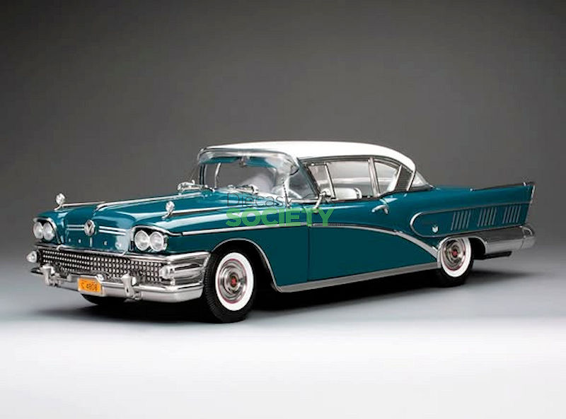 Sun Star is back with another American classic; this is their version of the 1:18 1958 Buick Limited Riviera Coupe.  This example is finished in exterior Glacier White/Dark Turquoise Poly.  No word has been released on production numbers, although arrival is slated for January 2026.