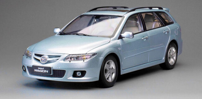 Sun Star has announced the 1:18 diecast and opening Mazda 6 Wagon. Not sure what percentage of collectors would gravitate to a “family hauler”, but if interested, Sun Star will include three exterior options. These are Glazier White, Sonic Blue Metallic and Glacier Silver Metallic. Delivery is noted for June 2026.