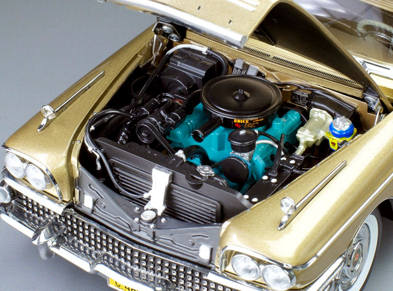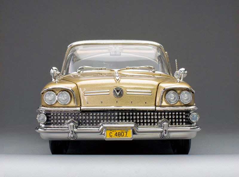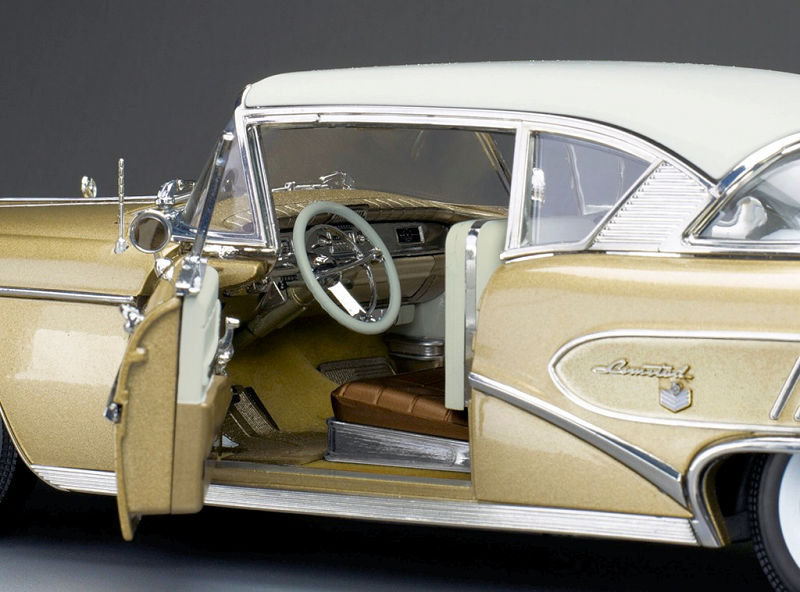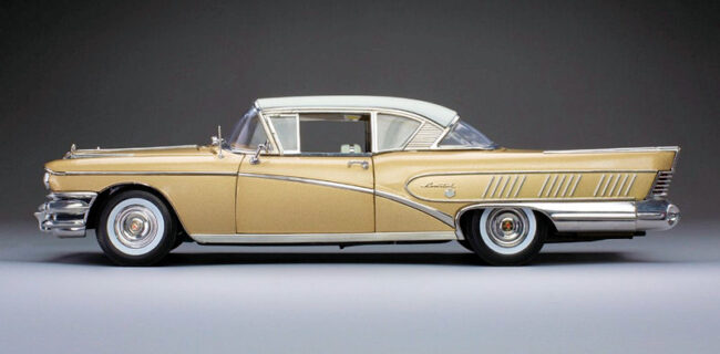 Sun Star unveils another exterior colour for their 1:18 metal and opening 1958 Buick Limited Riviera Coupe, this example is complete in Glacier White/Gold Mist.  Delivery is noted as January 2026.