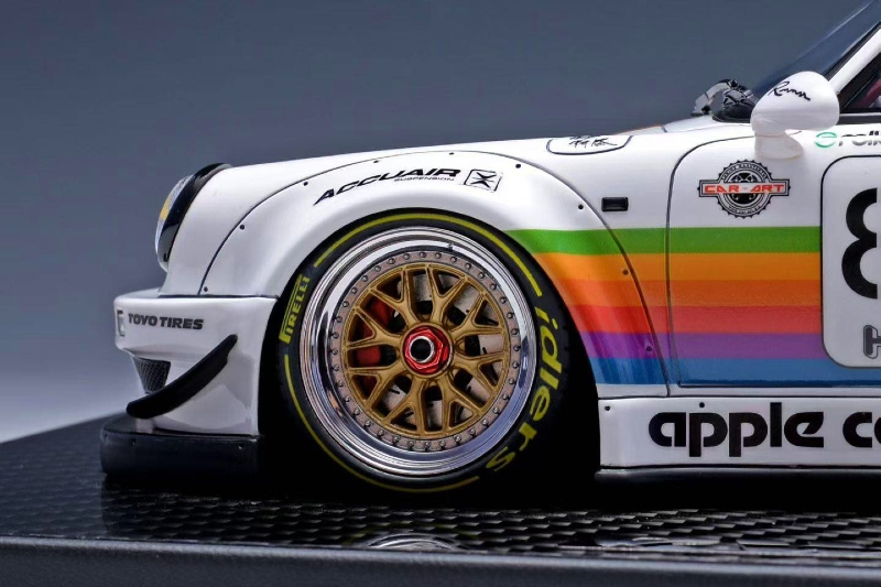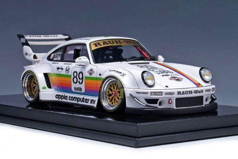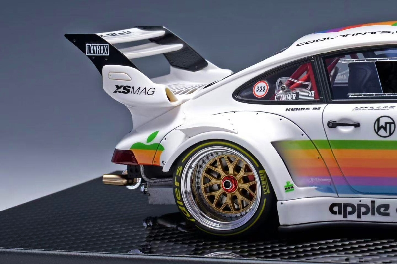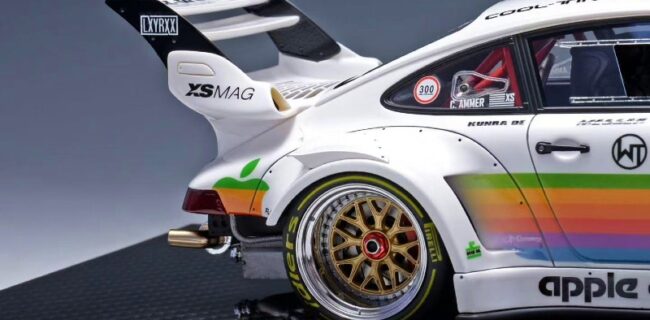 We highlighted this piece from TGM back in 2025. Not sure if this is re-release our final product sample release. Nonetheless, the 1:18 resin and sealed Porsche RWB 964 Apple Livery just looks stunning. Production is capped at 199 units.