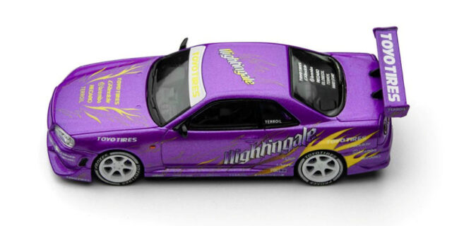 ** UPDATE ** We have the 1:64 Beetle RS Concept in White iAcro to share. This replica will arrive in January 2026. And we also added the 1:64 Skyline GT-R R34 “Drifting Flames” in Purple – this one due in April 2026.