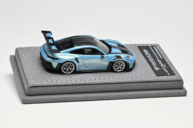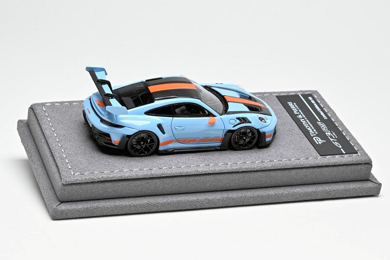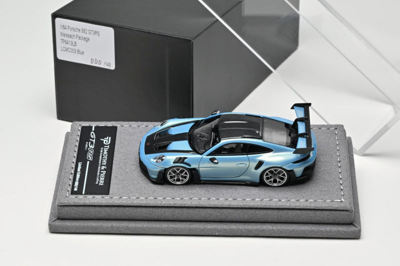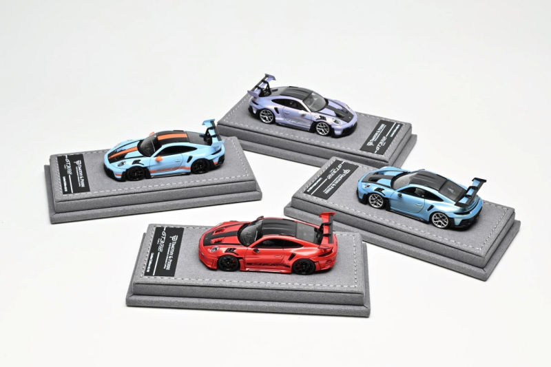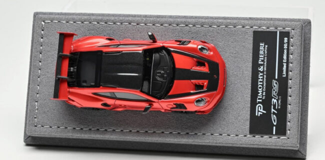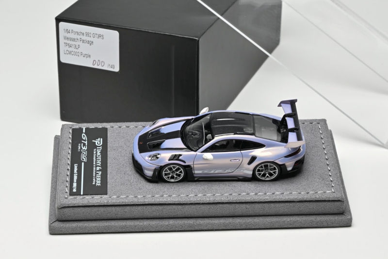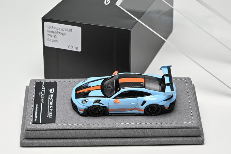 We haven’t heard from Timothy & Pierre in a minute… The team is back with the 1:64 resin and sealed Porsche 992 GT3 RS. Exterior options include: Livery: Gulf, Polarized Blue Effect, Polarized Purple Effect and Polarized Red Effect. Production runs from 149 to 99 pieces. Delivery is noted as January 2026.