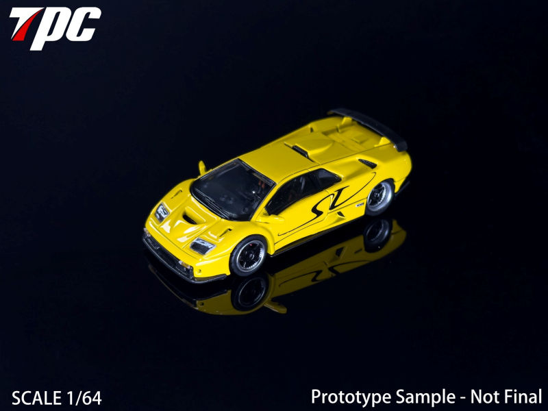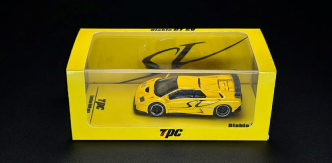 TPC is back with this 1:64 scale diecast and sealed Lamborghini Diablo SV GT-R. Two versions, both in Lemon Yellow, will be issued: SV and standard roller. Each is capped at 500 units with delivery scheduled for February 2026.