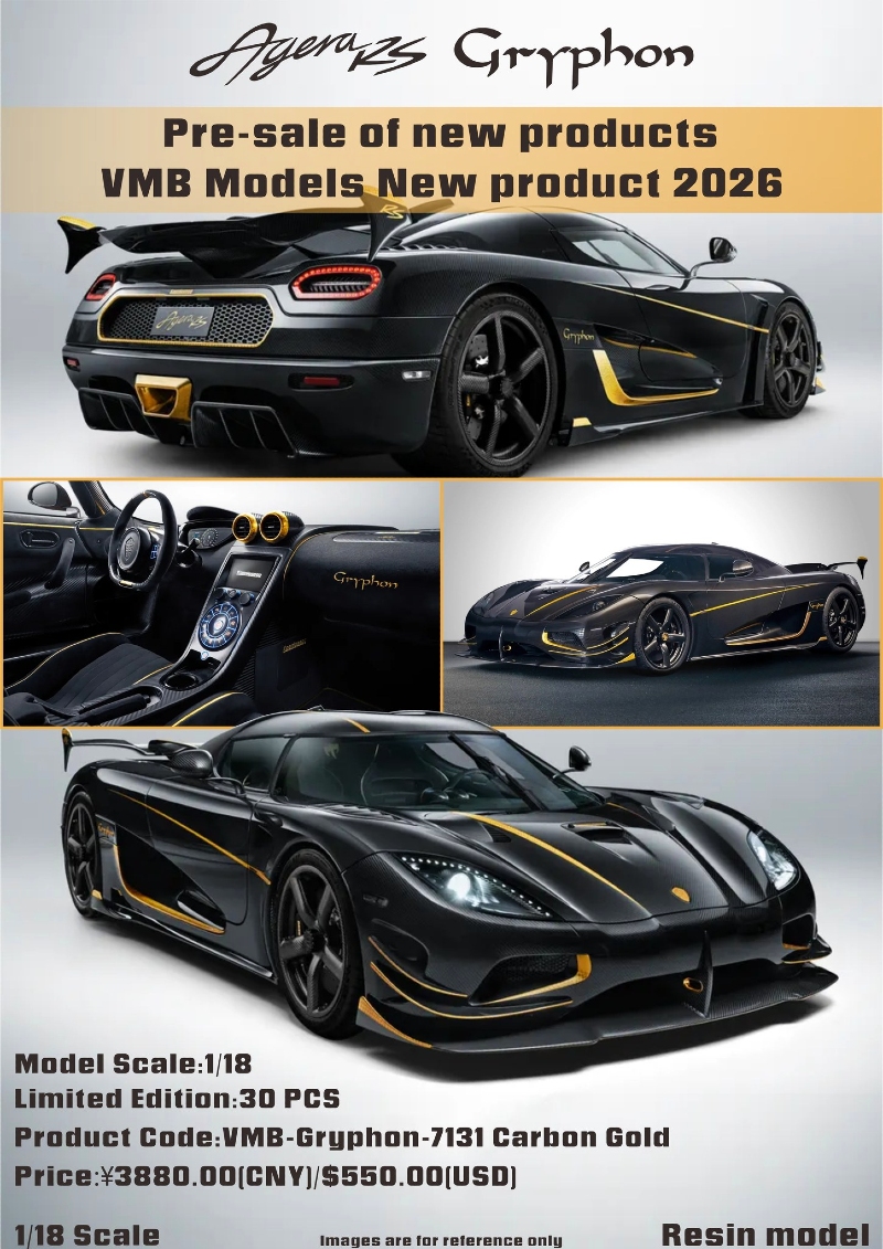 Another look at the Koenigsegg Agera RS 7131 from VMB Model. This is the Gryphon Carbon Edition. Production here is capped at 30 units Pricing around the $550 US mark. Delivery is noted as April 2026.