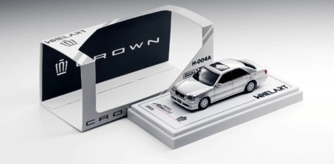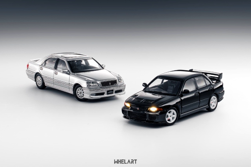 Wheelart is another brand dipping their toes into 1:64 scale.  The teams unveils the Toyota Crown S170 Athlete in Silver and the Mitsubishi EVO III in Black.  These are metal and sealed replicas.  Both will be on shelves in June 2026.