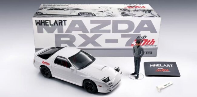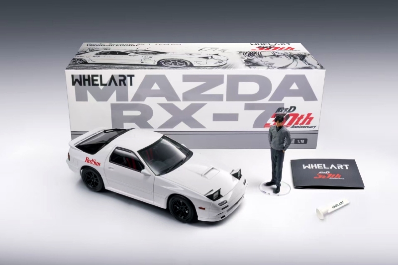 This neat metal and opening representation of the 1:18 scale Initial D 30th Anniversary Mazda FC3S is being released by Whelart! Model features and includes Ryosuke Takahashi figure, livery decals, serial card, cleaning cloth and door opener. We believe this is a June 2026 release!